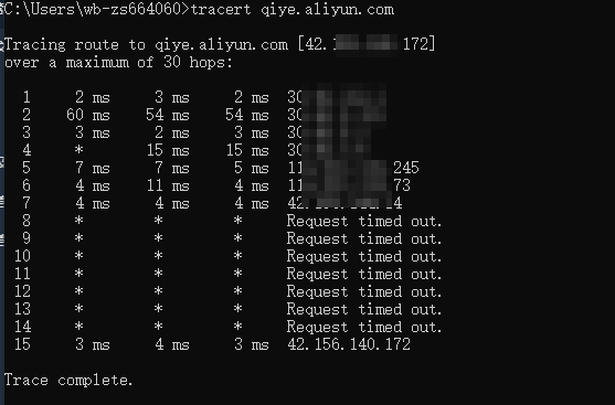 待以上命令均返回结束后,提供以上命令返回的完整数据截图,提交工单获取阿里云技术支持的帮助。