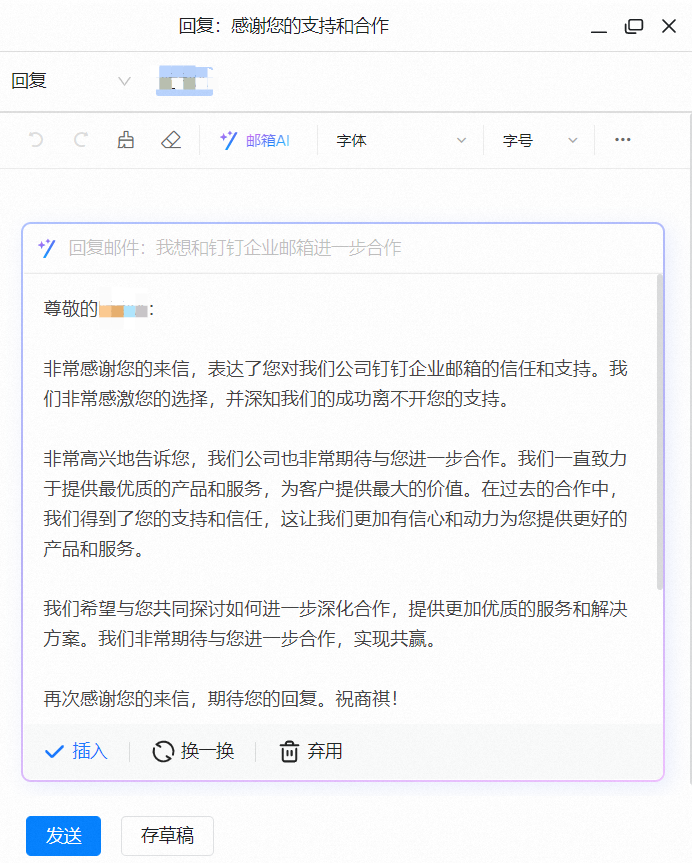 钉钉企业AI智能写信功能可谓是为企业提供了一种全新的写信方式,可以帮助你更加高效、专业地撰写邮件,提升工作效率和质量。