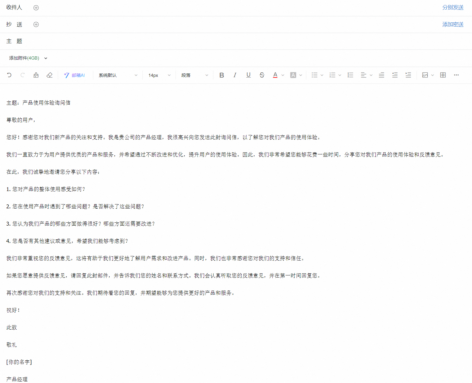 AI智能写信功能使用介绍